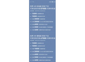 2025款問界M9推出限時購車政策,可享至高價值8.7萬元購車權(quán)益