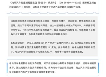 市監(jiān)局:2026年1月1日起實施電動汽車電耗限值強制新規(guī)