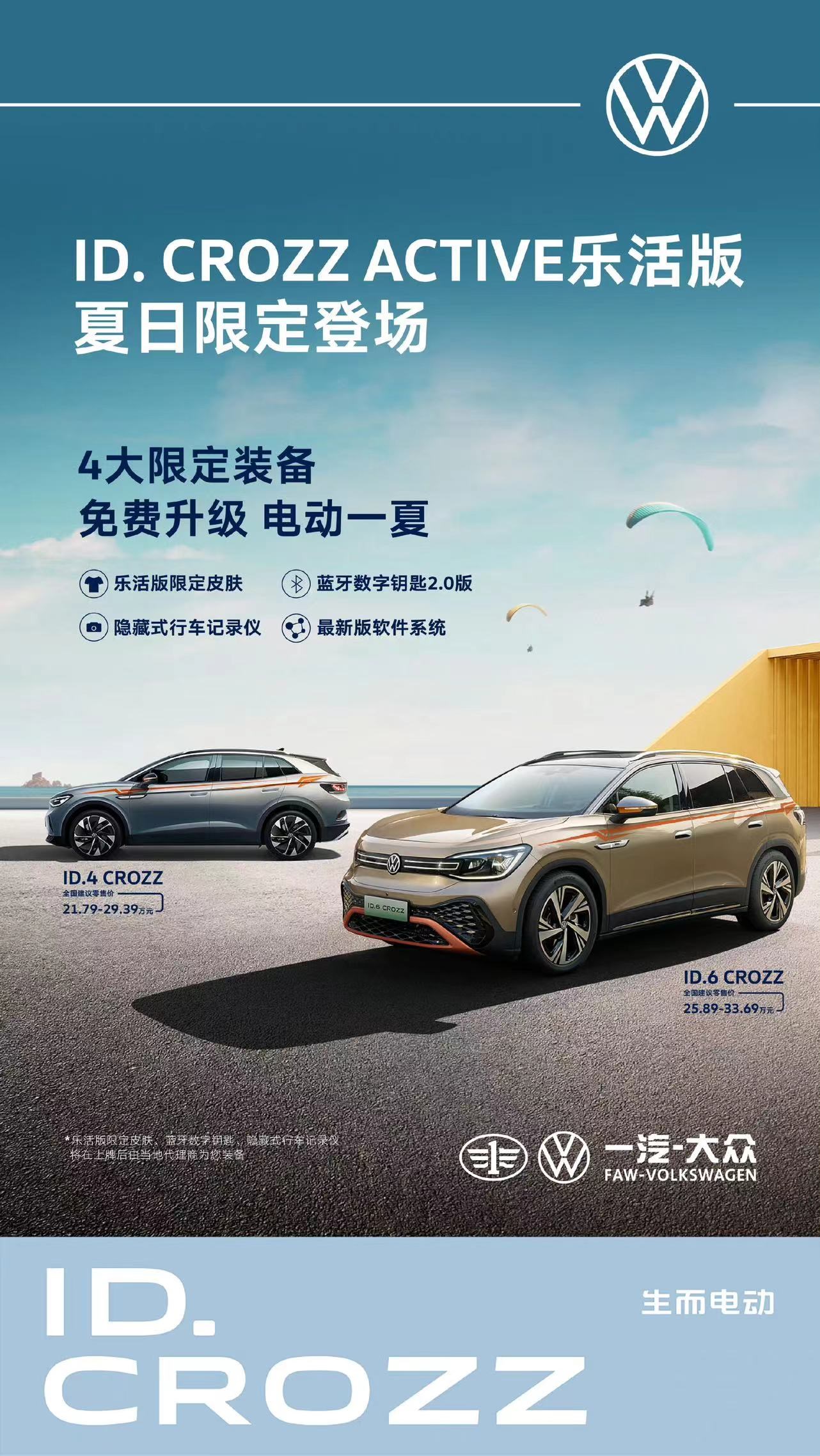 6月12日,買車網(wǎng)Buycar獲悉,一汽-大眾正式推出“ID. CROZZ ACTIVE樂活版”,可以說是加“量”不加價,其中ID.4 CROZZ ACTIVE樂活版售價區(qū)間21.79萬-29.39萬元,ID.6 CROZZ ACTIVE樂活版售價區(qū)間為25.89-33.69萬元。