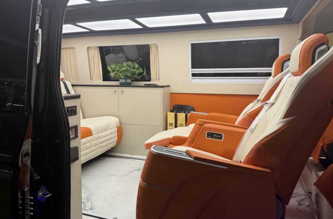 先鋒官V商務(wù)車則精準(zhǔn)捕捉了都市精英群體對于宿營車多功能性的高階需求,內(nèi)飾采用商務(wù)風(fēng)格設(shè)計(jì),座椅與床鋪模式自由切換,巧妙融合商務(wù)接待的體面與家庭休旅的舒適,實(shí)現(xiàn)從城市街道到曠野風(fēng)景的無縫銜接。